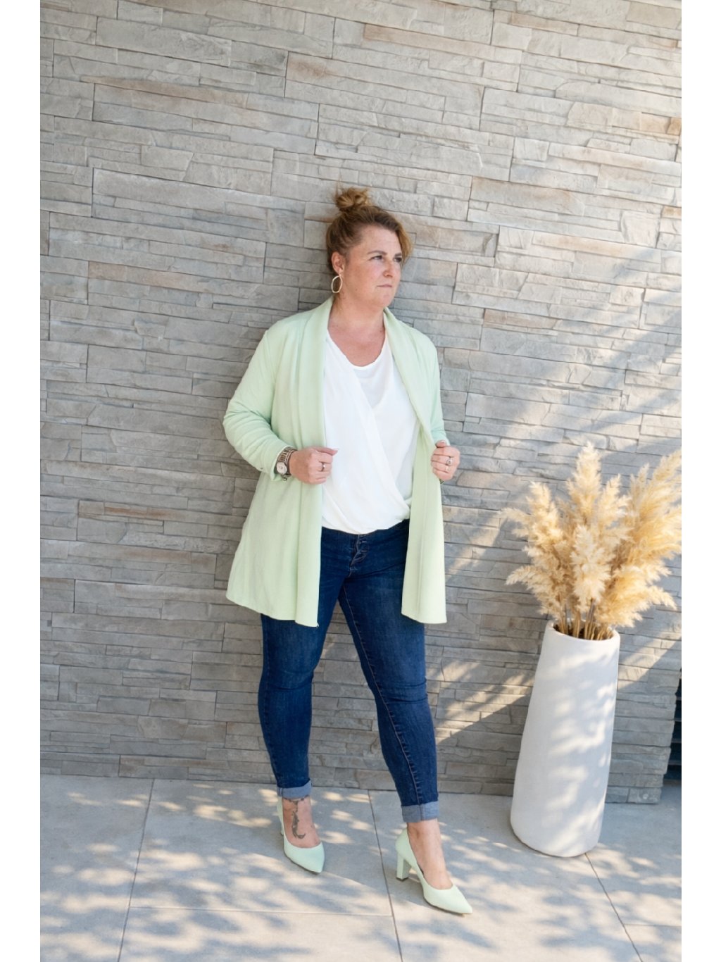Díky svému minimalistickému designu je cardigan ve stylu saka bez zapínání univerzálním kouskem – hodí se do práce, na schůzky i pro běžné denní nošení, kdy chcete zapůsobit.