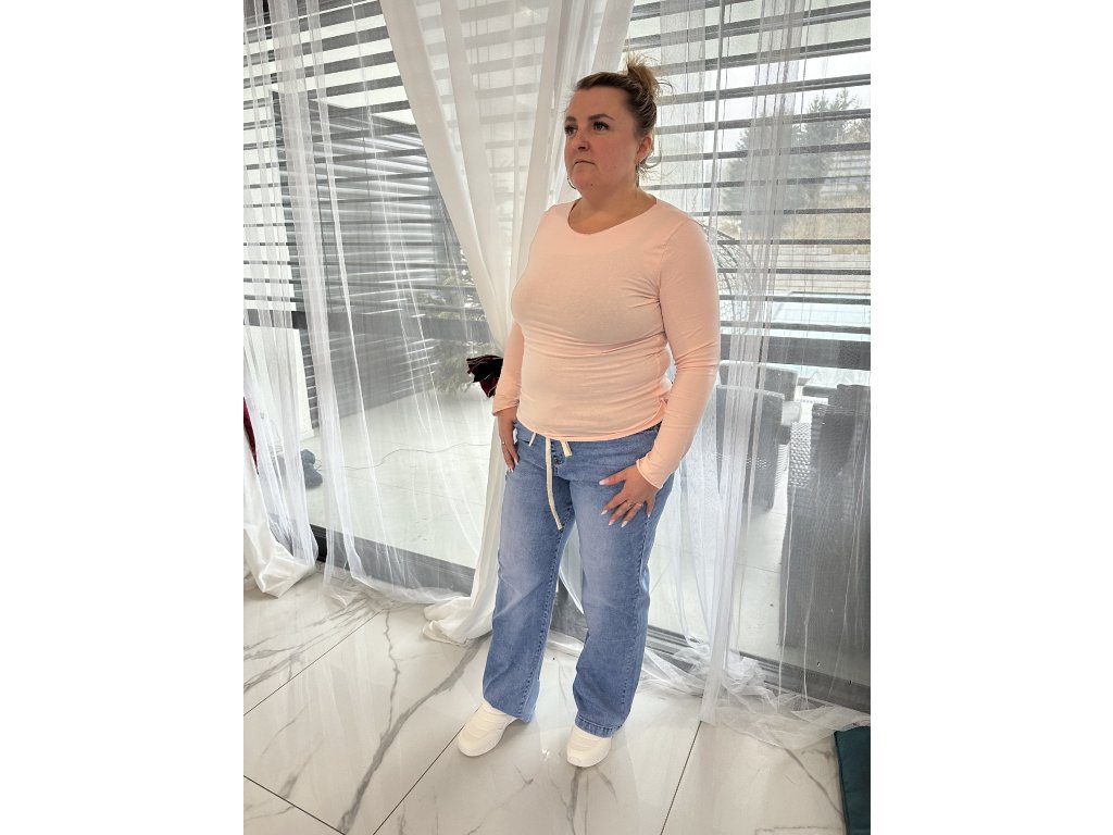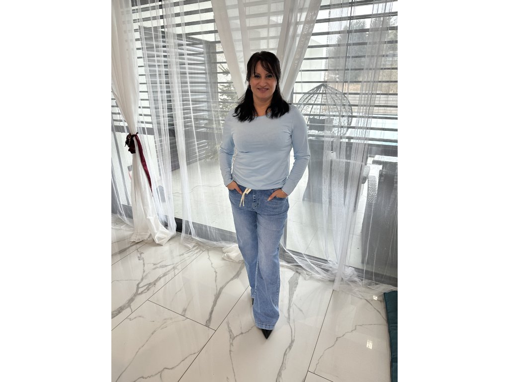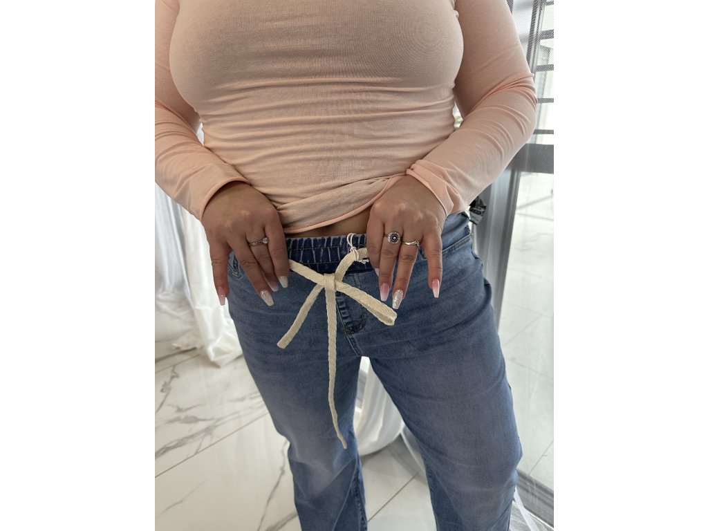 Světle modré široké džíny Fenomen s pružným pasem na gumu a možností zavázání na šňůrku spojují maximální pohodlí s moderním vzhledem.