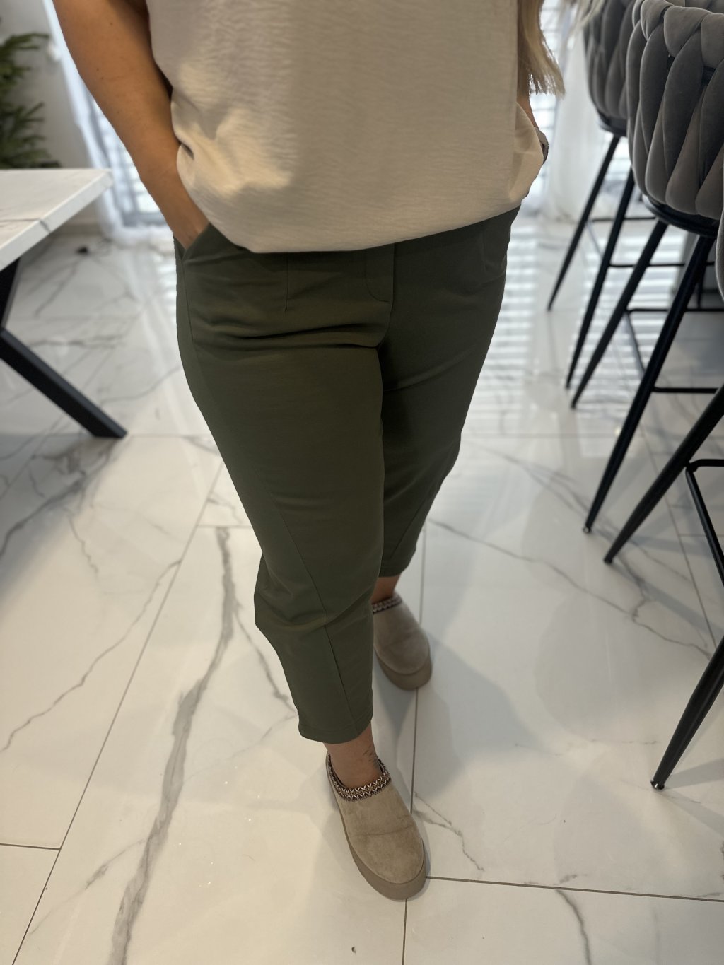 Holky, tyhle kalhoty lehce zkombinujete s tričkyTrička, Džískamy i našimi Sakamy – hodí se jak na běžné nošení, tak i na elegantnější outfit. Jsou to přesně ty kalhoty, které si vezmete ráno a víte, že v nich vydržíte celý den.