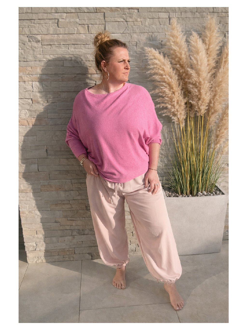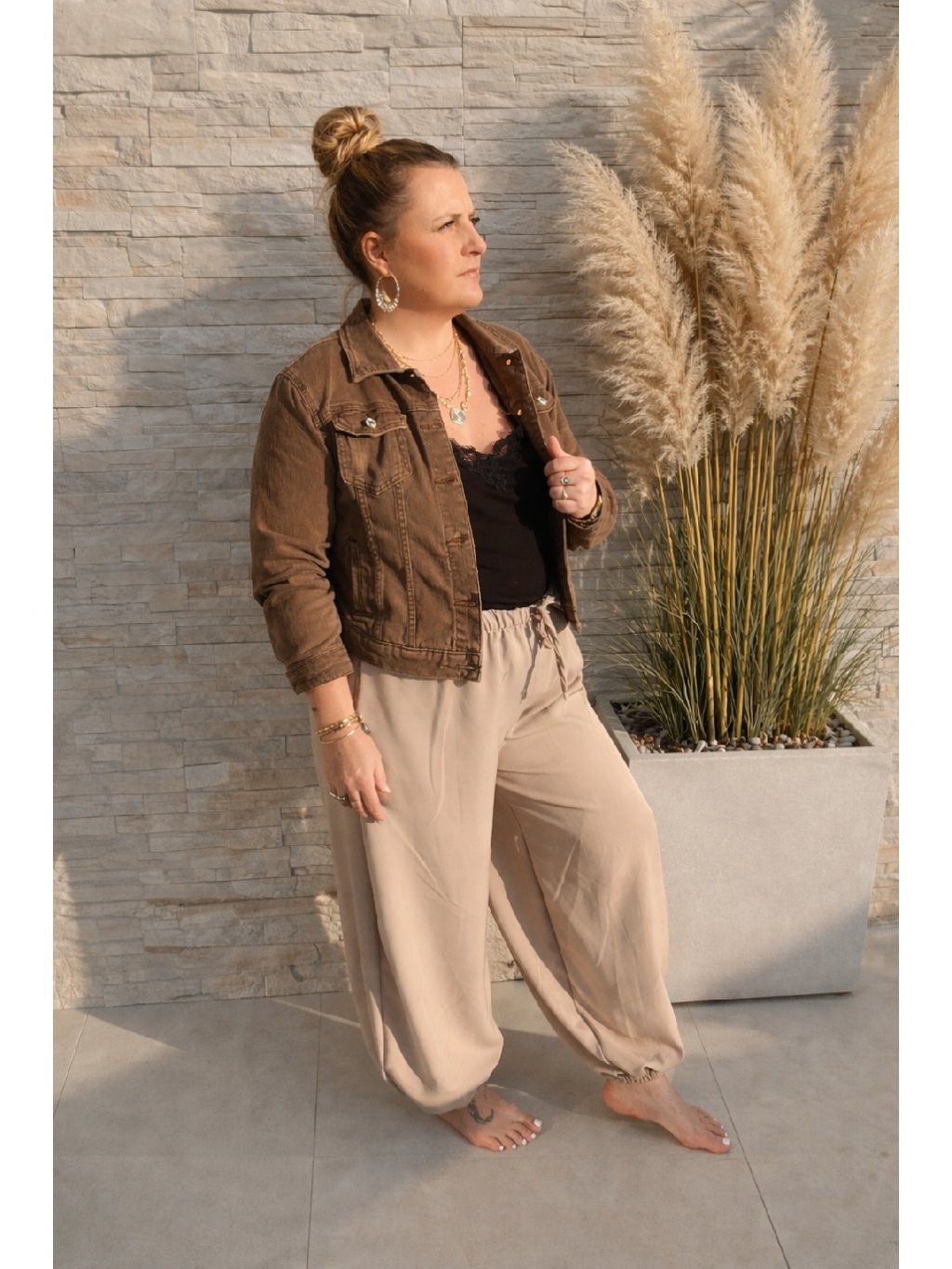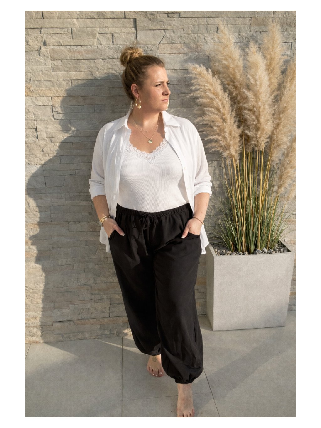 Elastická guma v pase se přizpůsobí postavě a zajistí příjemné nošení bez omezení. Spodní část nohavic je zakončena jemnou gumou, která dodává kalhotám moderní vzhled a zároveň drží tvar. Lehký a příjemný materiál působí vzdušně a komfortně po celý den. Praktické kapsy podtrhují jejich funkčnost a dělají z nich ideální kousek pro volný čas i neformální outfit.