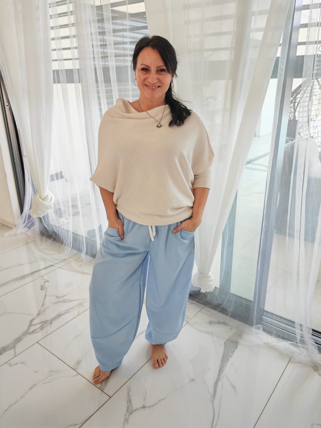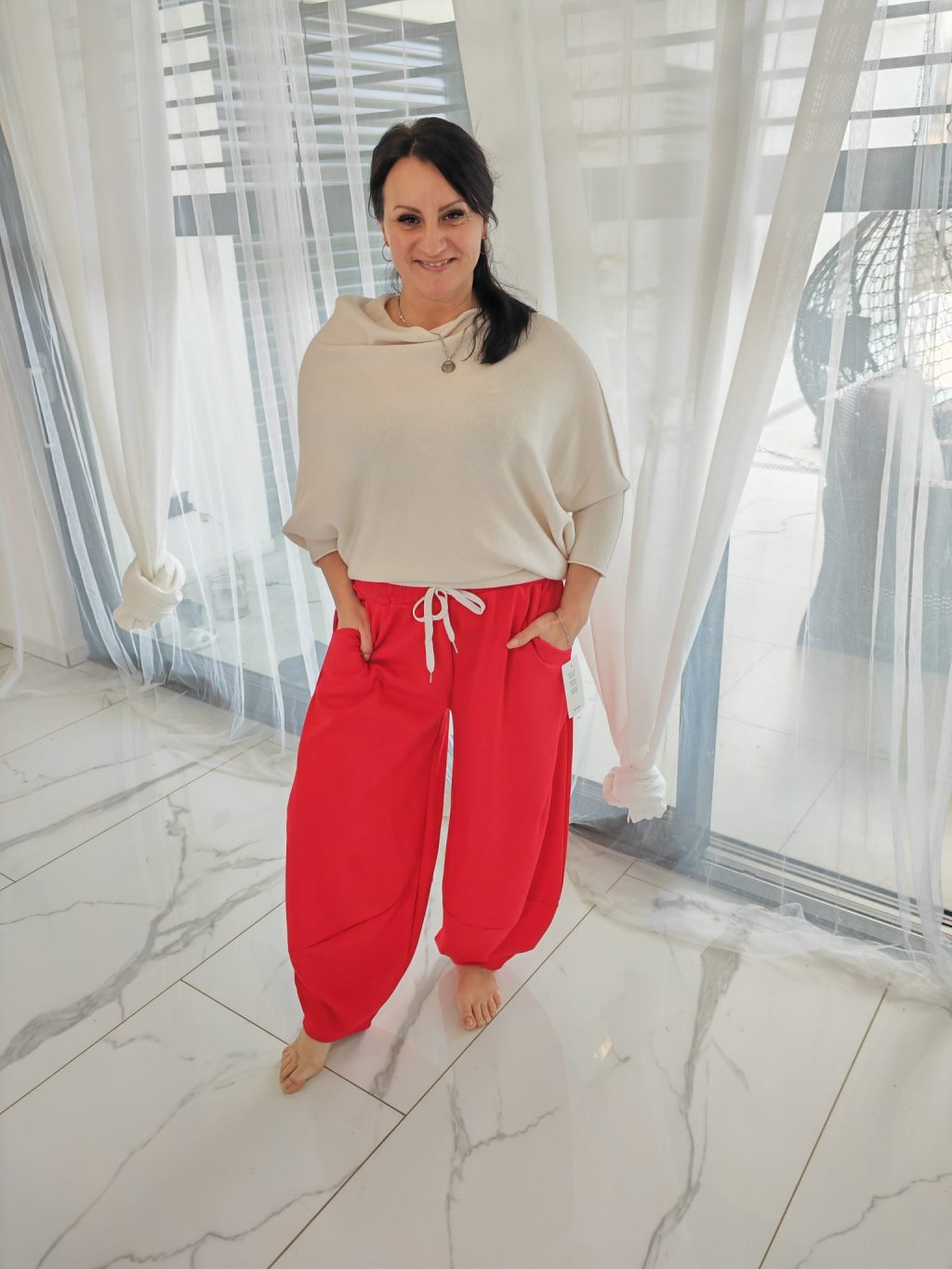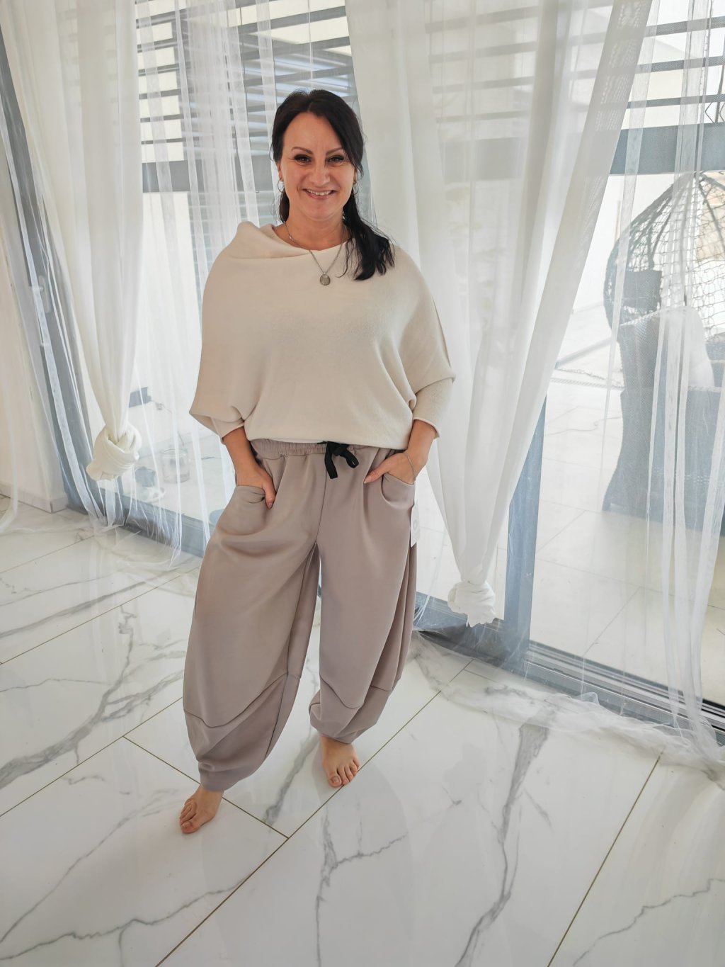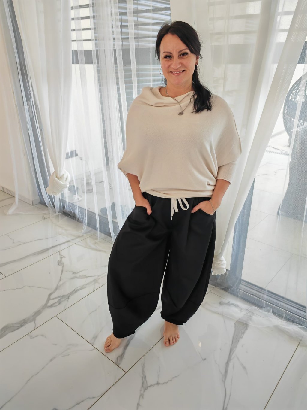 Holky, tohle jsou tepláky, které vás úplně dostanou!  Mají stylový balonový střih u kotníků, který perfektně sedí a přitom jsou maximálně pohodlné.