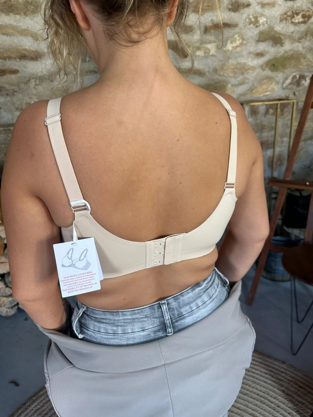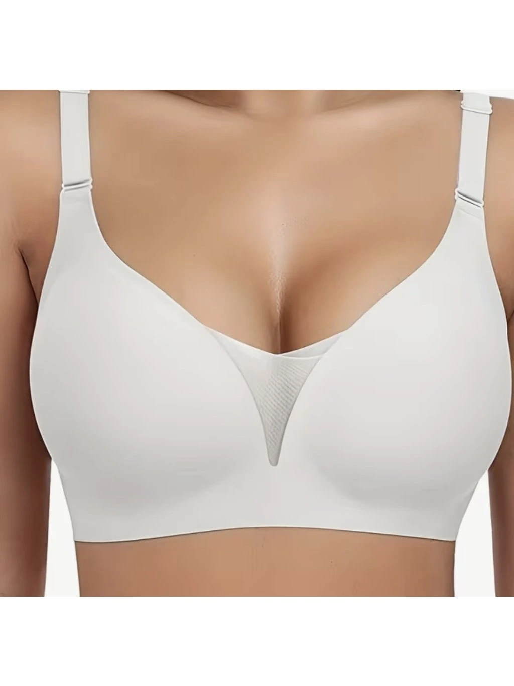 Pohodlná měkká podprsenka s decentní překříženou vsadkou působí jemně, přirozeně a velmi příjemně na nošení. Jde o tzv. „bralette“ bez kostic, která je navržená pro každodenní komfort a nenápadnou eleganci.