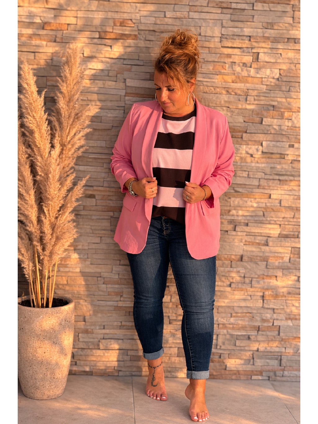 Sako disponuje dvěma falešnými klopami vpředu a jemnými vycpávkami na ramenou, které dodávají saku elegantní tvar a perfektní siluetu. Buďte středem pozornosti a nechte se unést pohodlím a stylem. Užijte si šarm a eleganci v jednom!