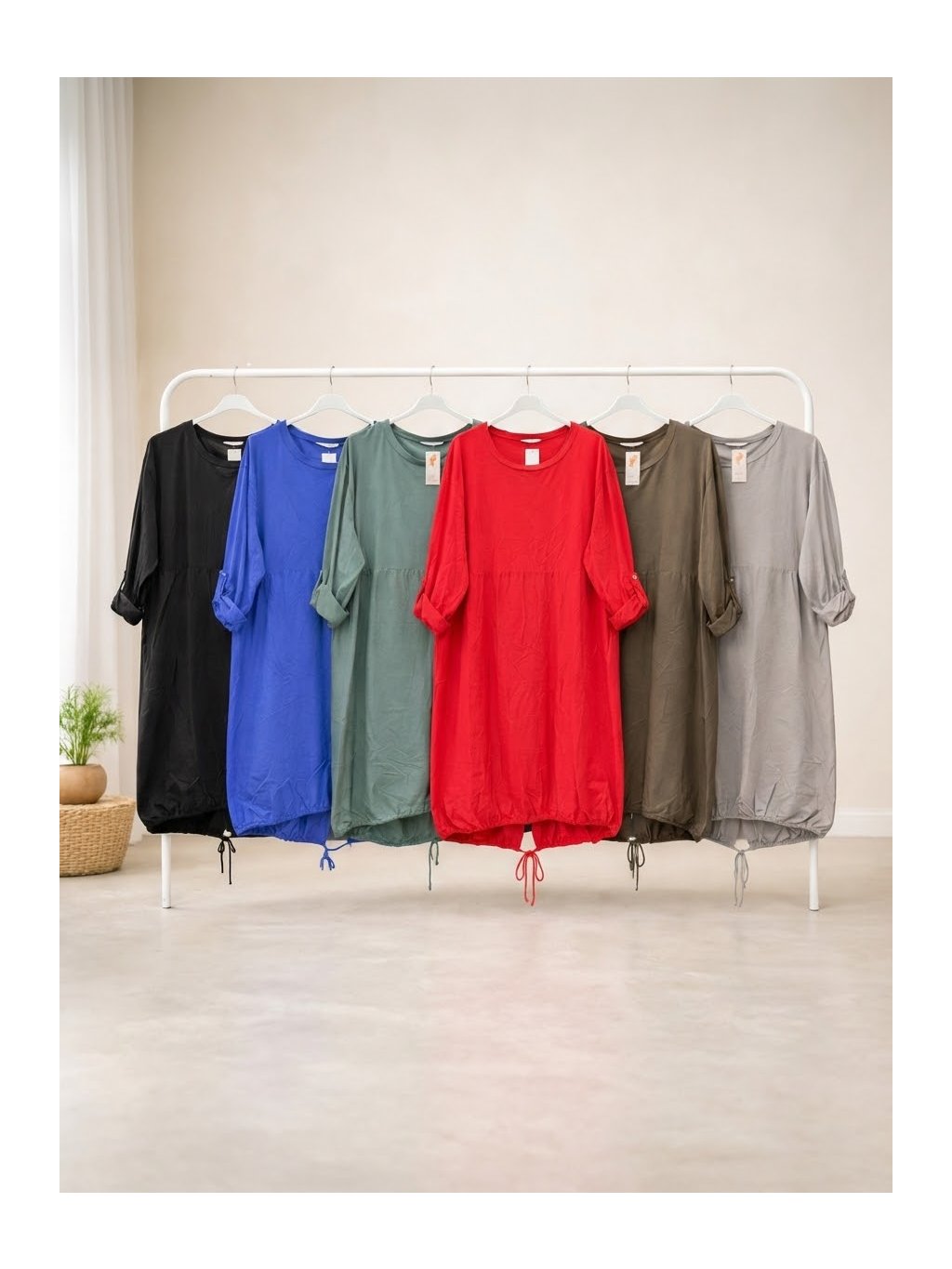 Spodní stahování v zadní části na šňůrku ti dovolí šaty lehce upravit – volnější nebo víc do tvaru.