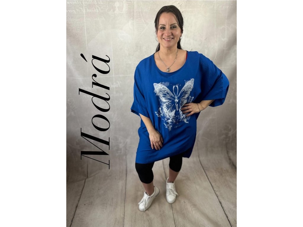 Holky, chtěli jste větší, máme větší tuniky/trička s krásným vzorem motýla, která uspokojí všechny dámy toužící po větších velikostech. Naše platínkové tuniky/trička nabízejí nejenom pohodlí, ale také stylový design. Velmi vzdušný a volný střih zajistí, že se budete cítit skvěle a svobodně v každé situaci. Tyto kousky jsou navrženy s důrazem na pohodlí a šarm, a proto jsou ideální volbou pro každou příležitost. Jsou k dispozici ve ve velikosti uni která sedne od L do 3XL.Přijďte si vybrat svou oblíbenou tuniku nebo tričko a buďte stylová a pohodlná současně!"