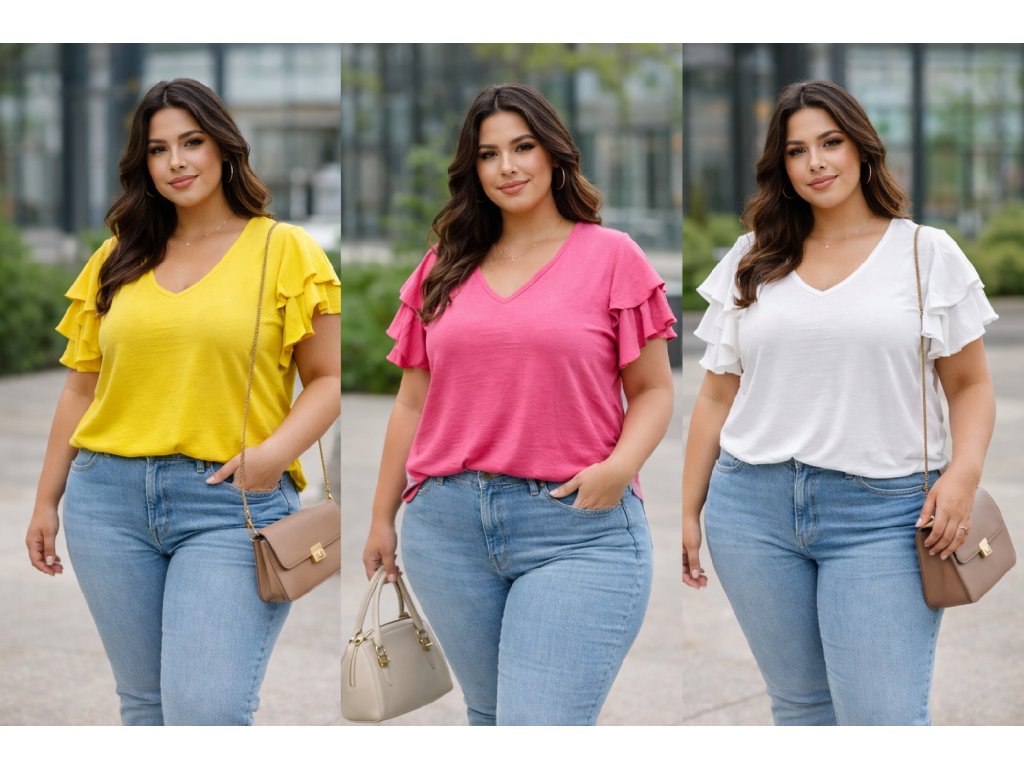Tričko má elegantní výstřih do V, který lichotí dekoltu a působí žensky. Velmi oblíbeným detailem je guma ve spodní části, díky které si tričko krásně zregulujete podle potřeby – můžete ho nosit volně nebo lehce podkasat.