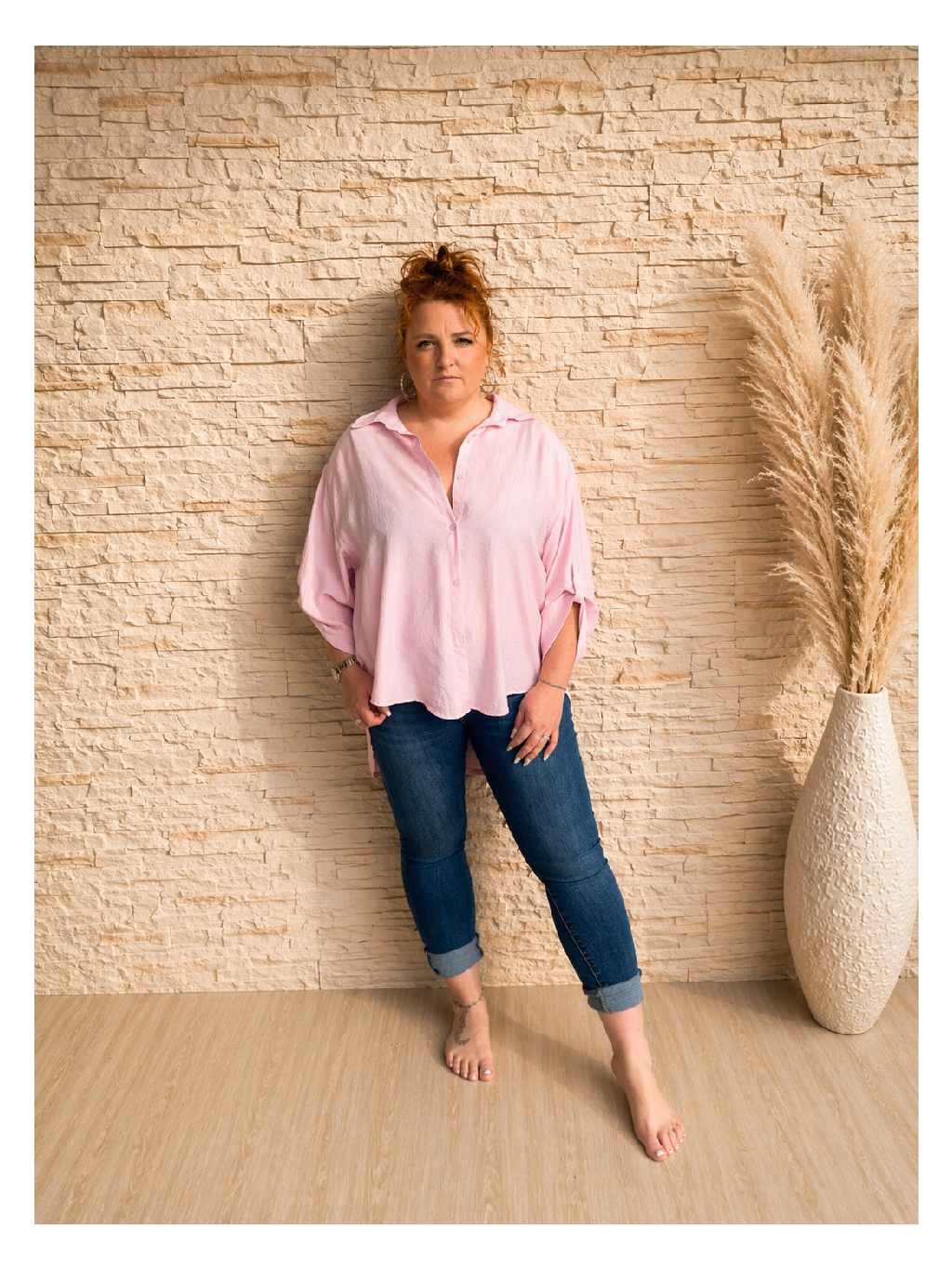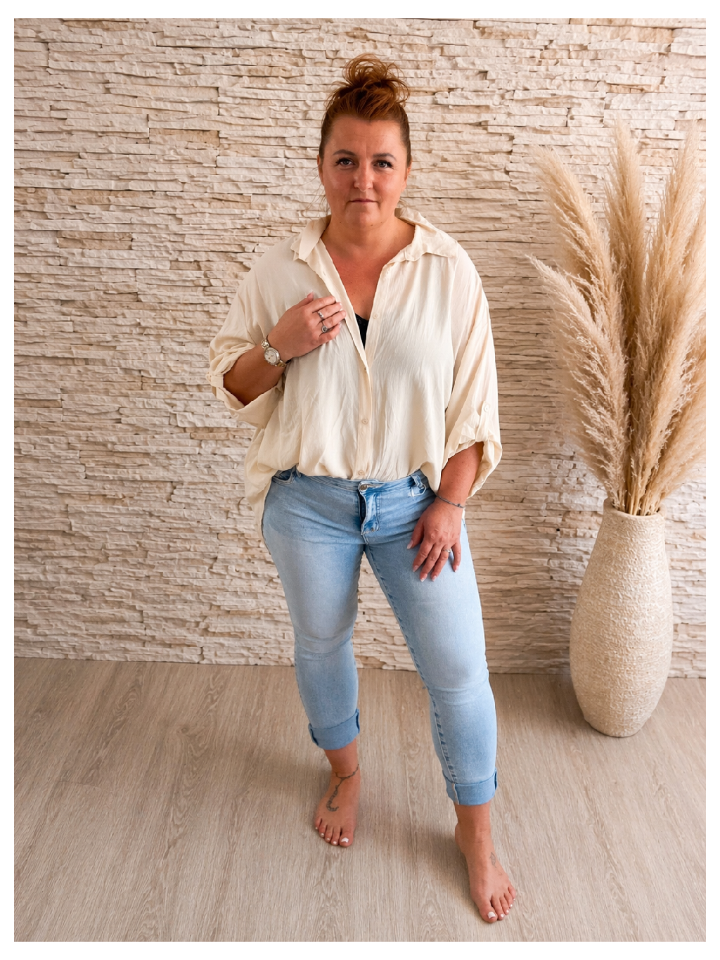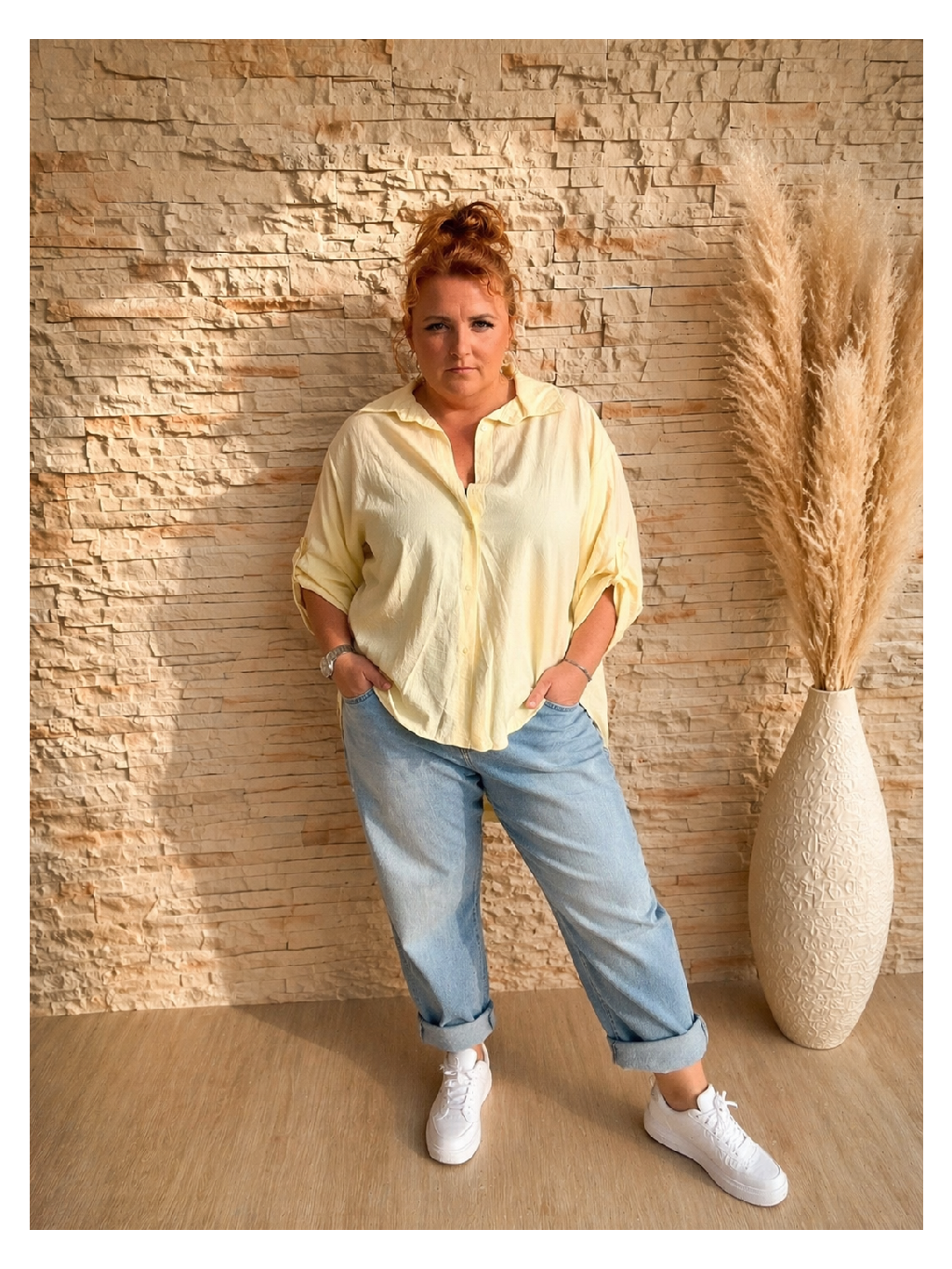 Zapínání na knoflíky po celé délce (tzv. „button-down“ styl) dodává košili variabilitu – můžeš ji nosit plně zapnutou, lehce rozepnutou, nebo i jako přehoz přes tílko či top