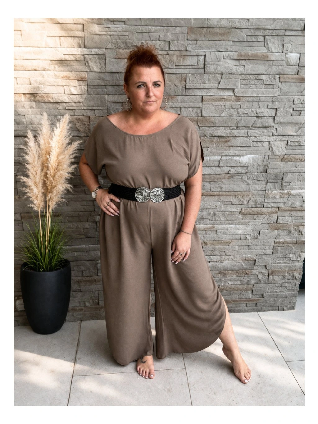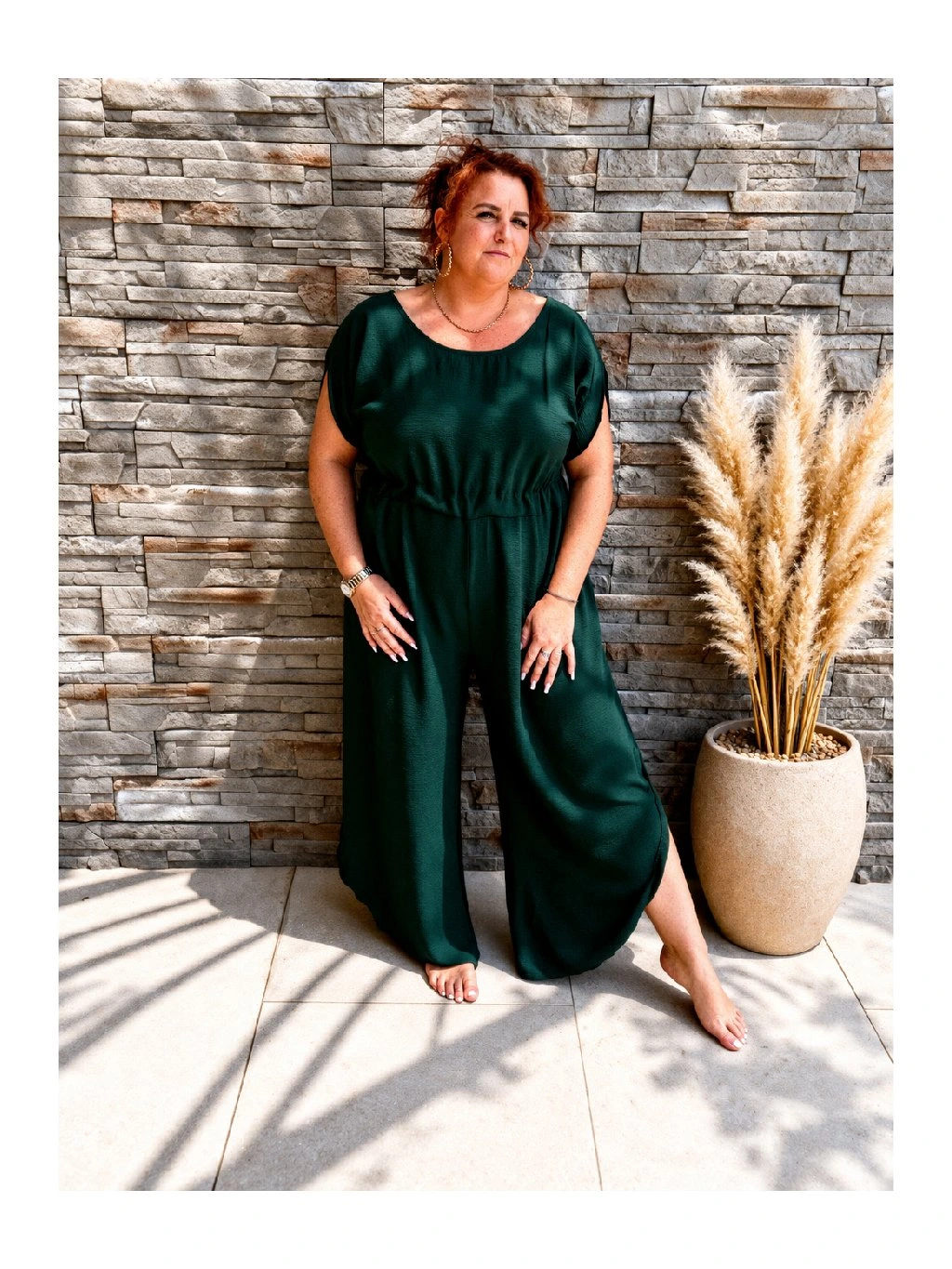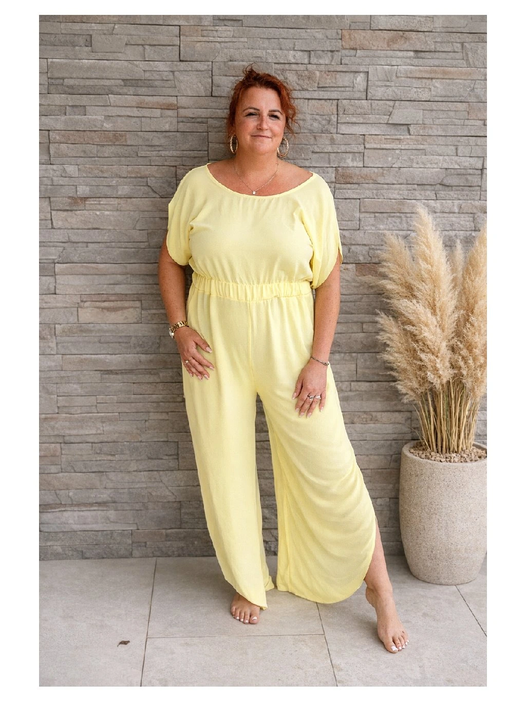 Krátké rukávy dodávají overalu ležérní charakter, zatímco promyšlené detaily jako elastický pas, zavazování v pase nebo jemné řasení zvýrazňují siluetu a dodávají ženský šmrnc. Díky své univerzálnosti se hodí jak na běžné nošení do města, tak na dovolenou nebo letní setkání s přáteli. Stačí doplnit sandály či teniskami a stylový outfit je hotový.